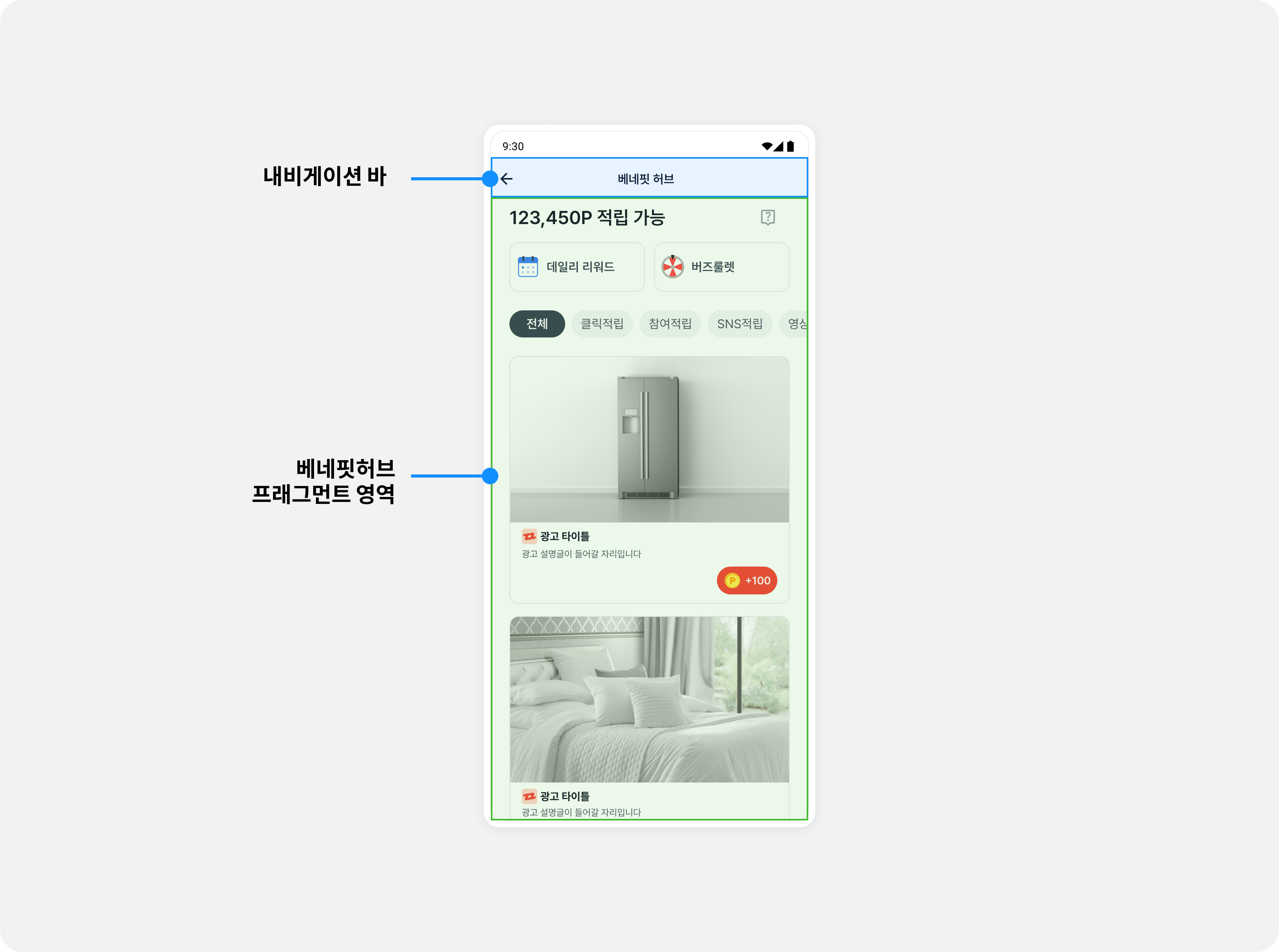 베네핏허브(피드)의 기본 형태가 바텀시트에서 전체 화면으로 변경되면서 베네핏허브에서는 더 이상 툴바를 지원하지 않습니다. 피드에서 사용하는 FeedToolbarHolder를 삭제하세요.