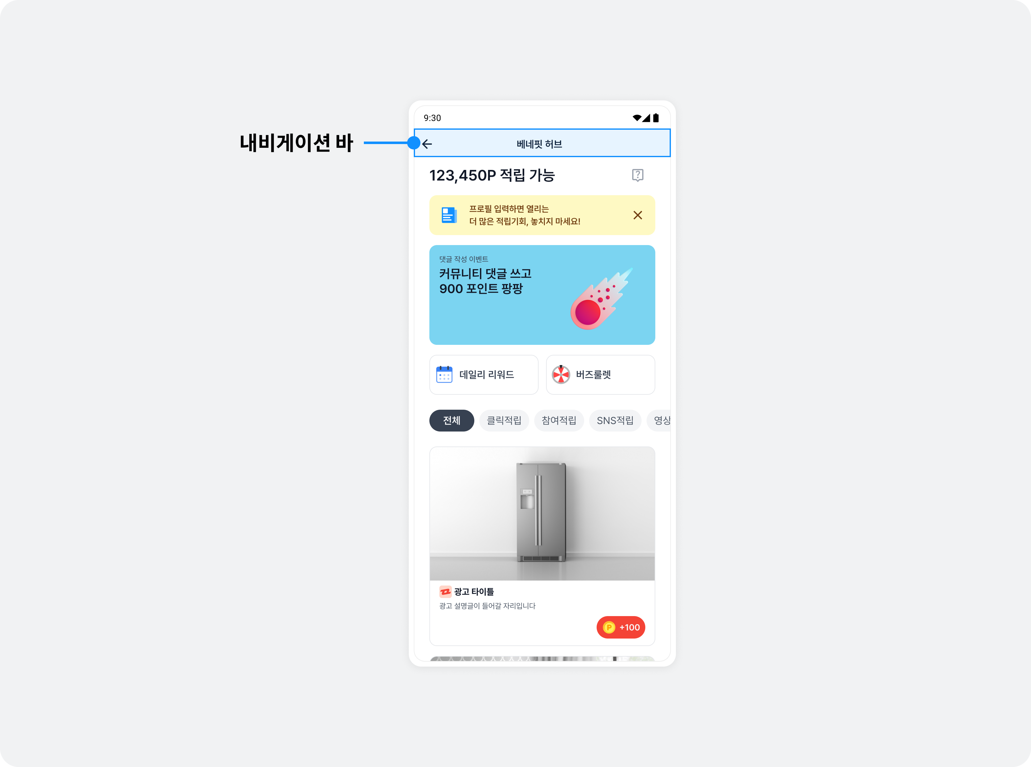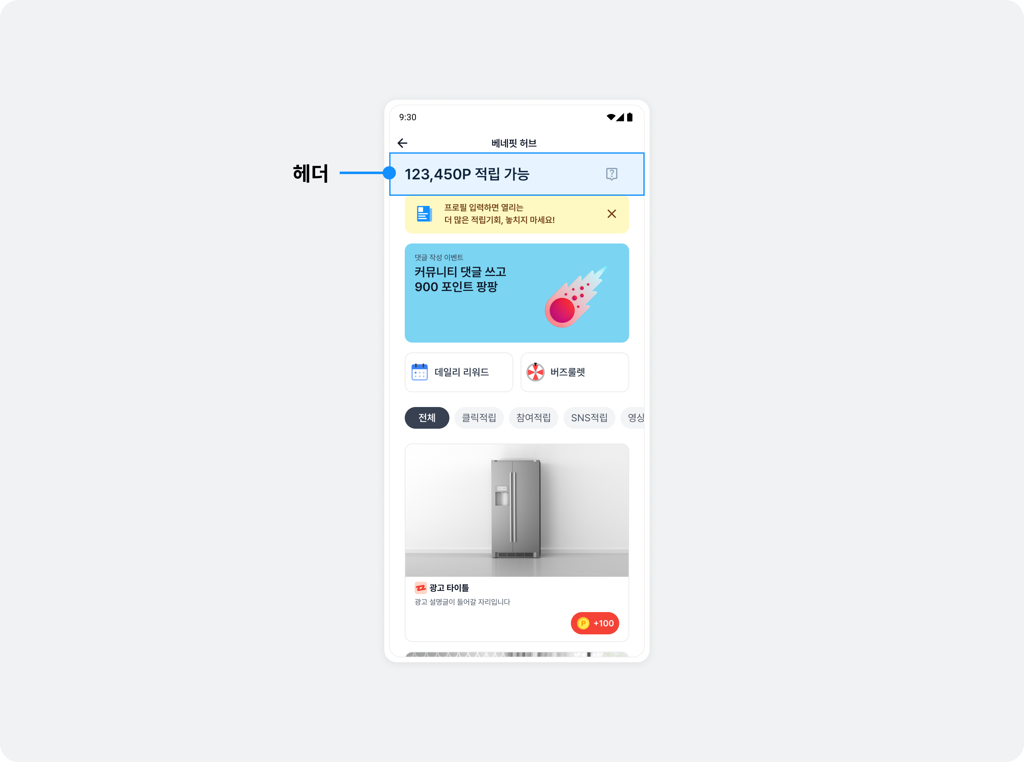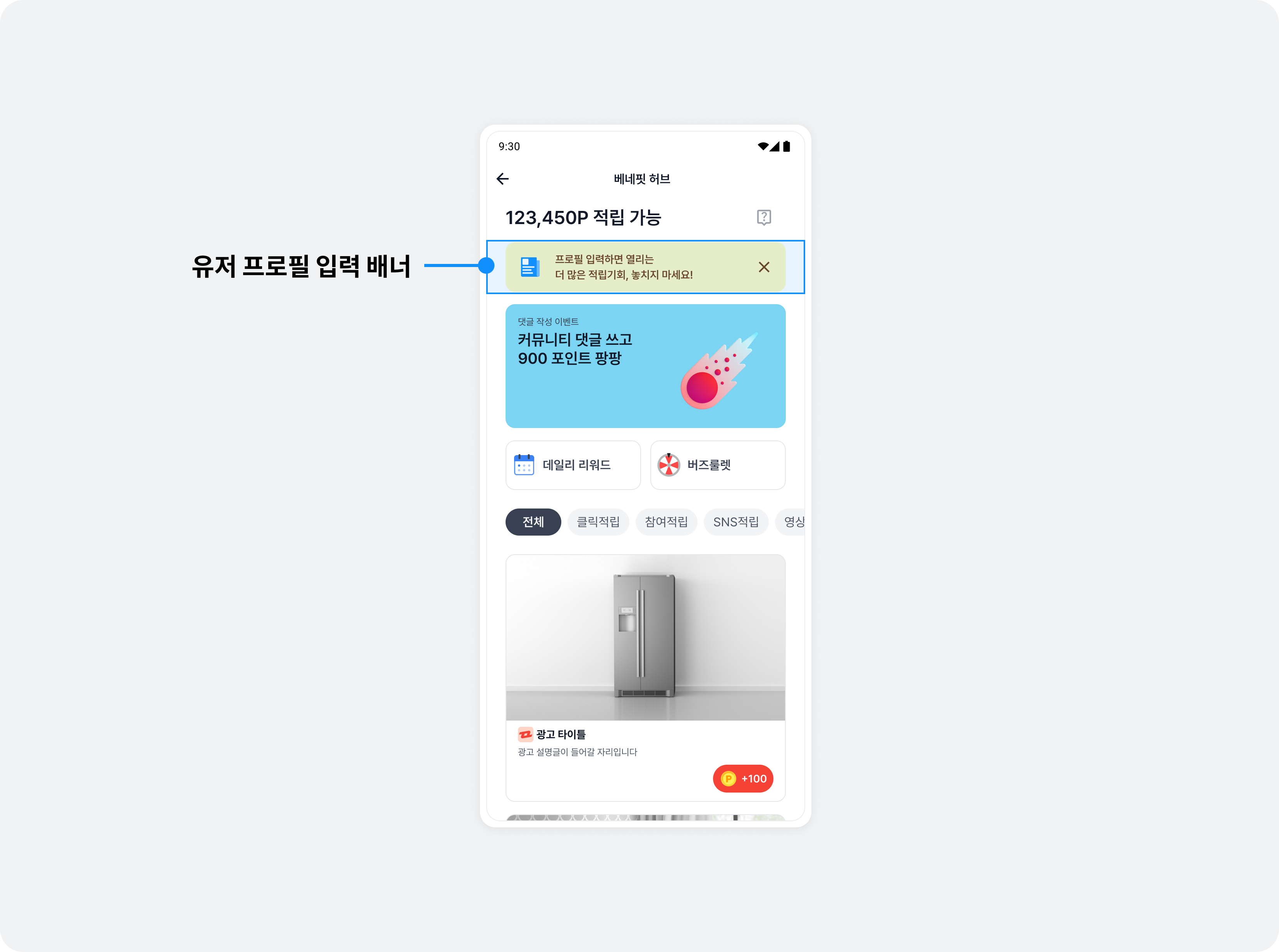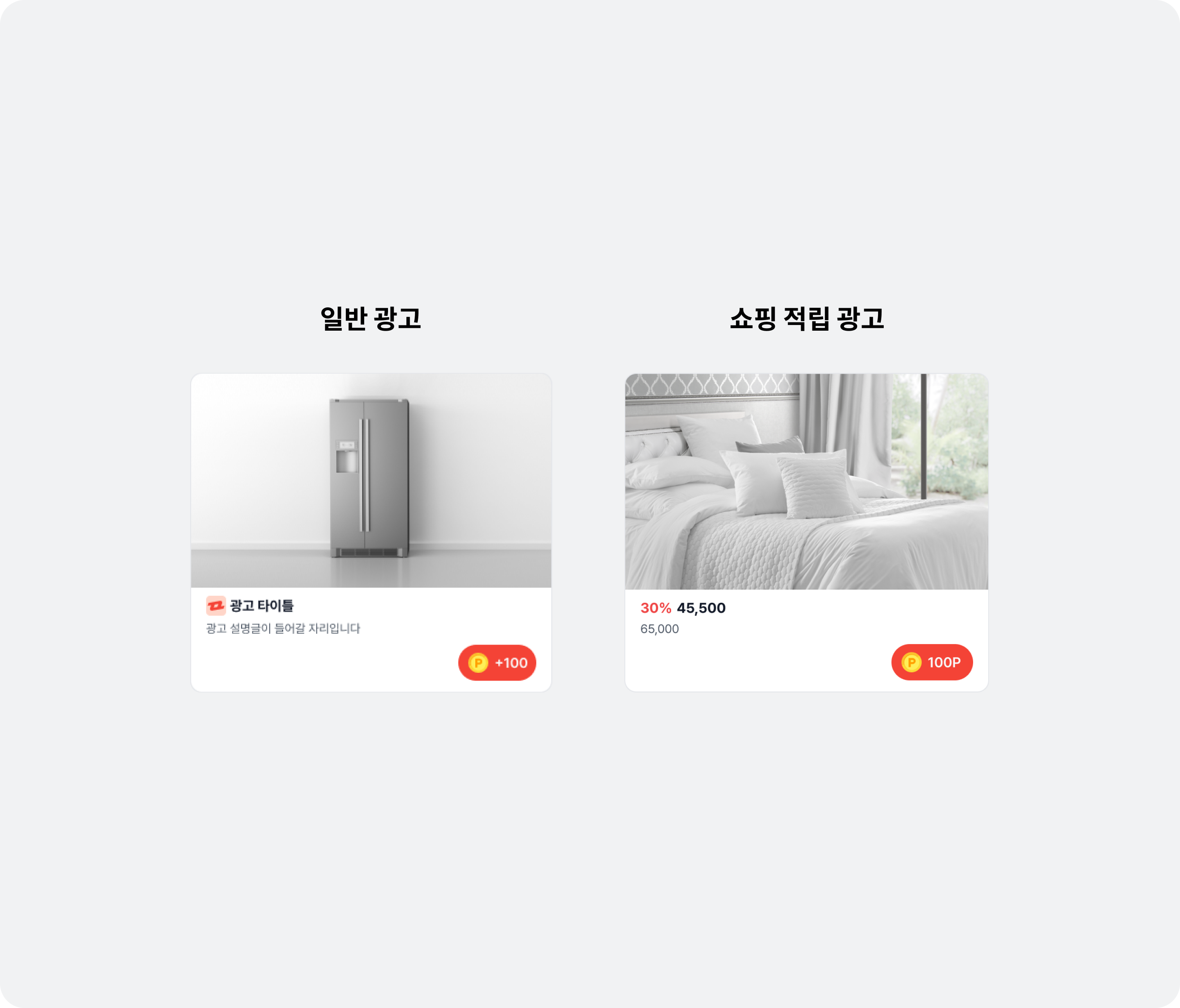 - 네이티브 또는 자체 구현한 광고 디자인을 사용하는 베네핏허브 등에는 적용되지 않습니다.