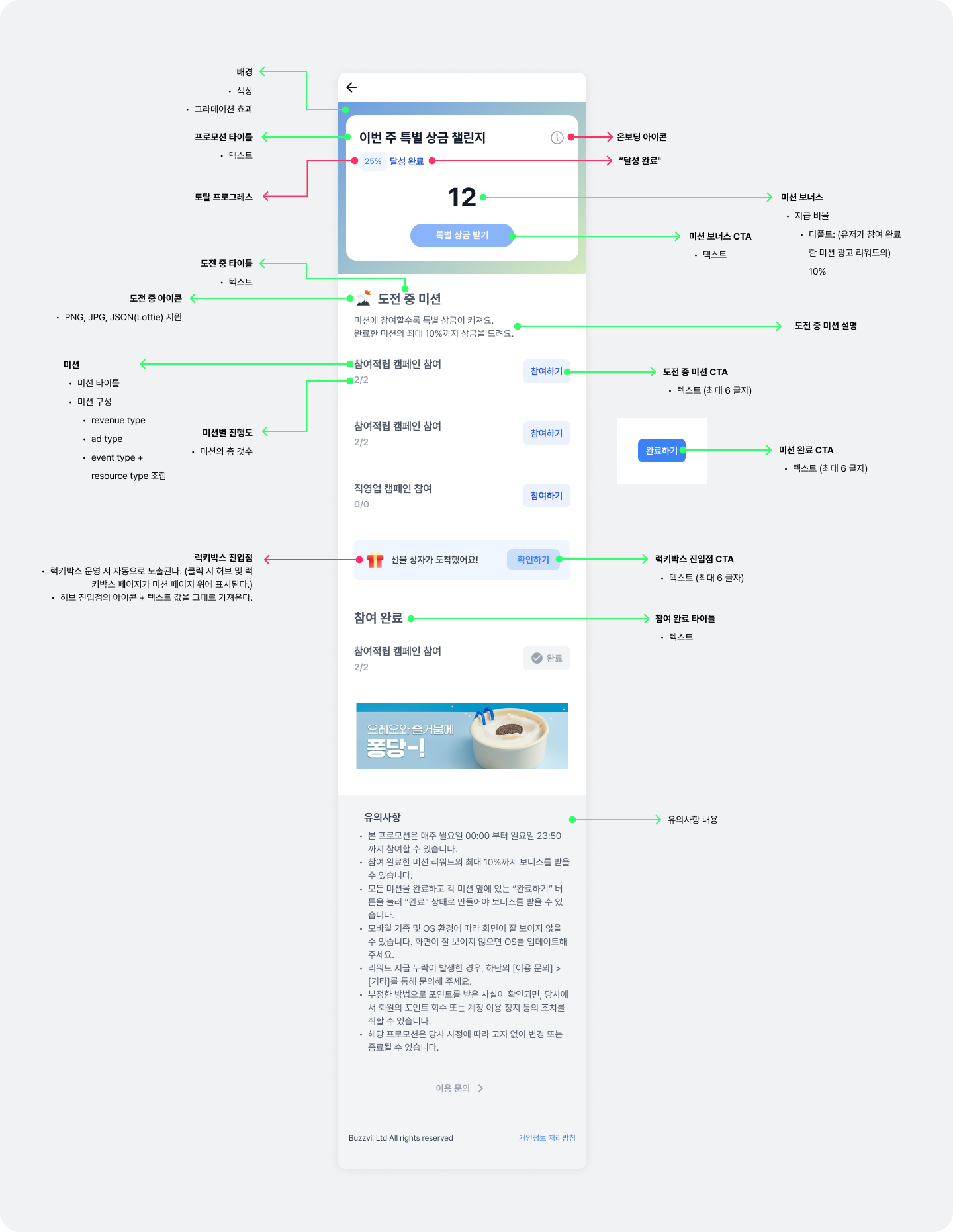 SDK 패치 없이 UI 스트링 및 이미지 소재를 설정하여 럭키박스의 스타일을 원하는 대로 설정할 수 있습니다. 설정하고 싶은 항목과 내용을 버즈빌 담당자(help@buzzvil.com)에게 전달해 주세요.