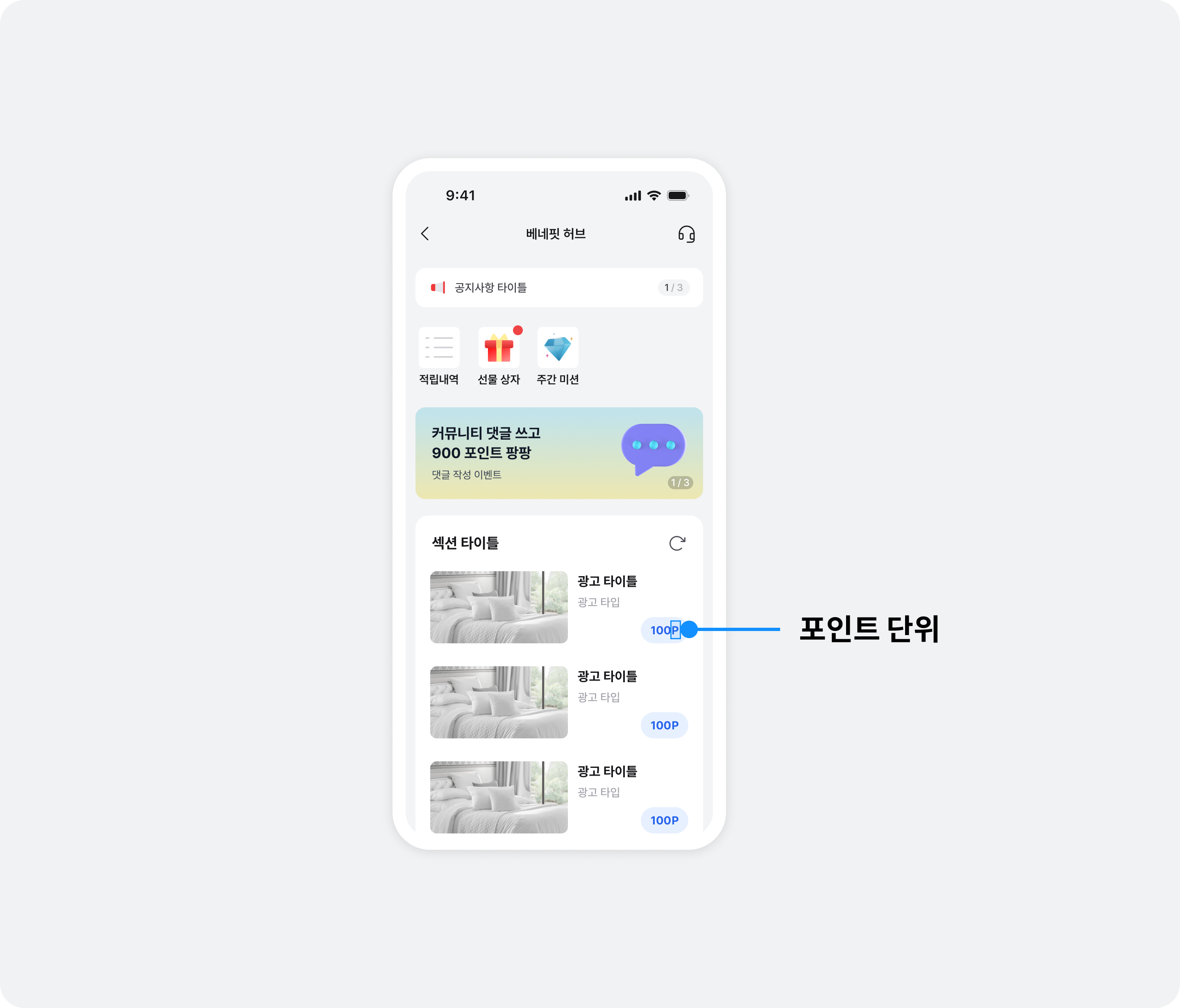 베네핏허브에 표시되는 포인트 단위를 변경할 수 있습니다. 변경하고자 하는 포인트 단위를 버즈빌 담당자(help@buzzvil.com)에게 전달해 주세요.