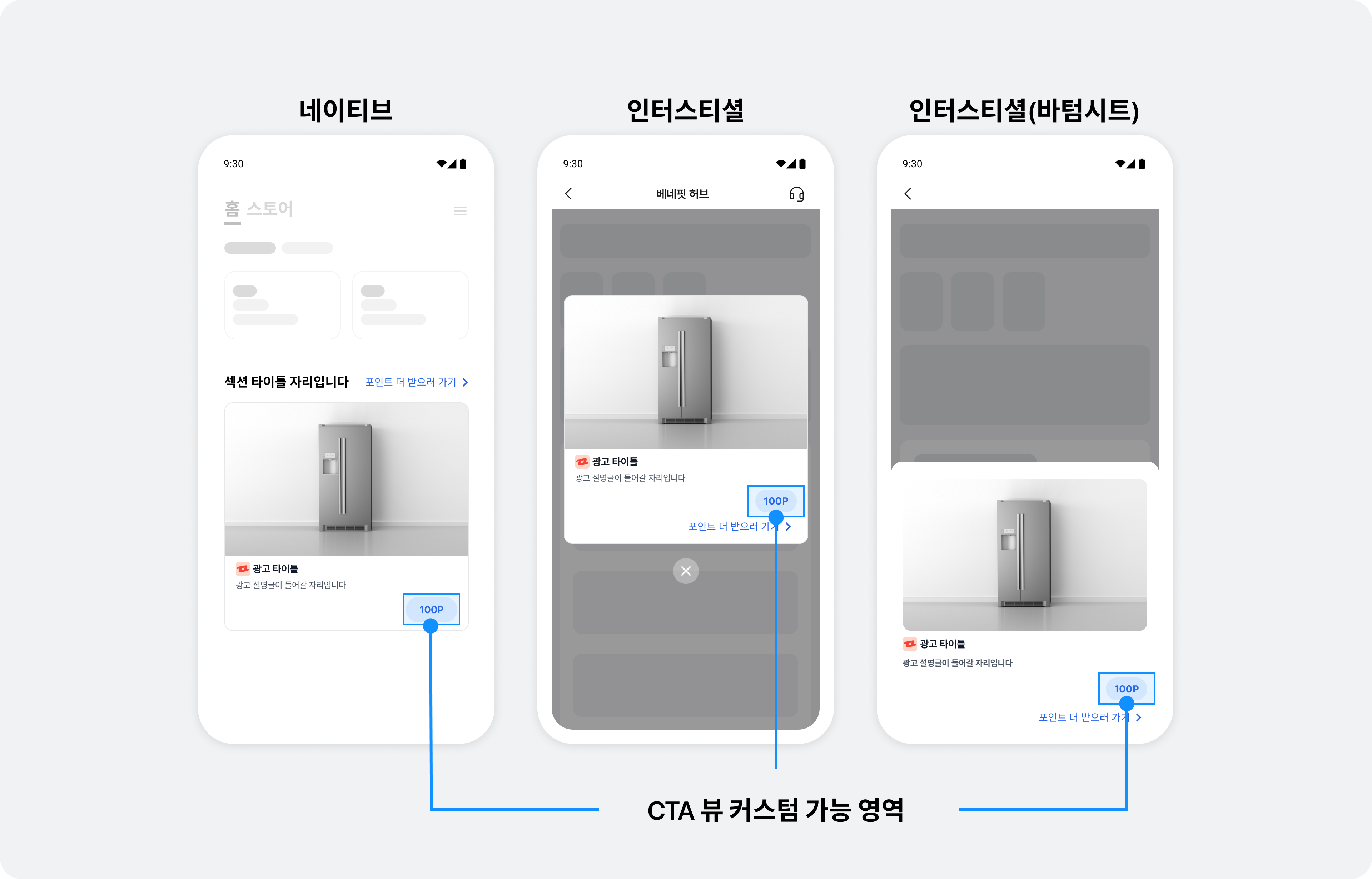 네이티브 및 인터스티셜에서는 CTA 버튼 자체 구현하기를 통해 포인트 단위를 변경할 수 있습니다.