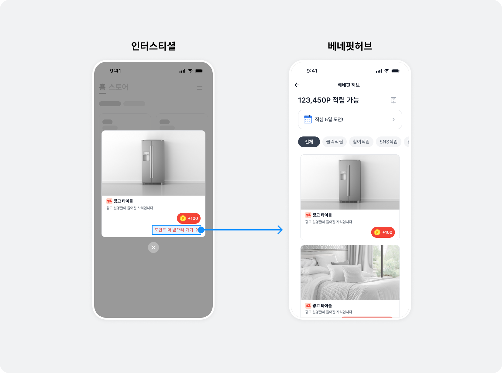 인터스티셜 지면에서 베네핏허브 지면으로 이동할 수 있는 진입점을 추가하세요.