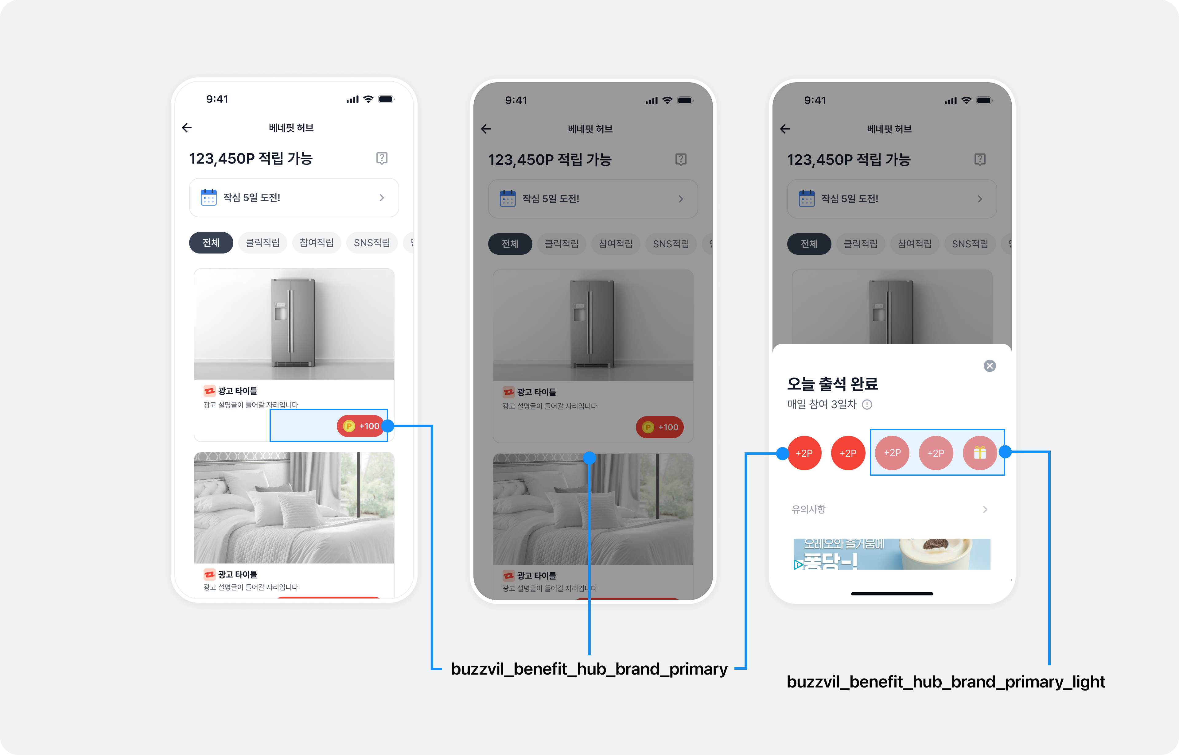 Buzzvil SDK에서 제공하는 UI 중 다이얼로그의 버튼 색상, 바텀 시트 UI의 확인 버튼 등 앱에 연동한 모든 지면 내 주요 UI의 색상(Primary color)을 변경할 수 있습니다.