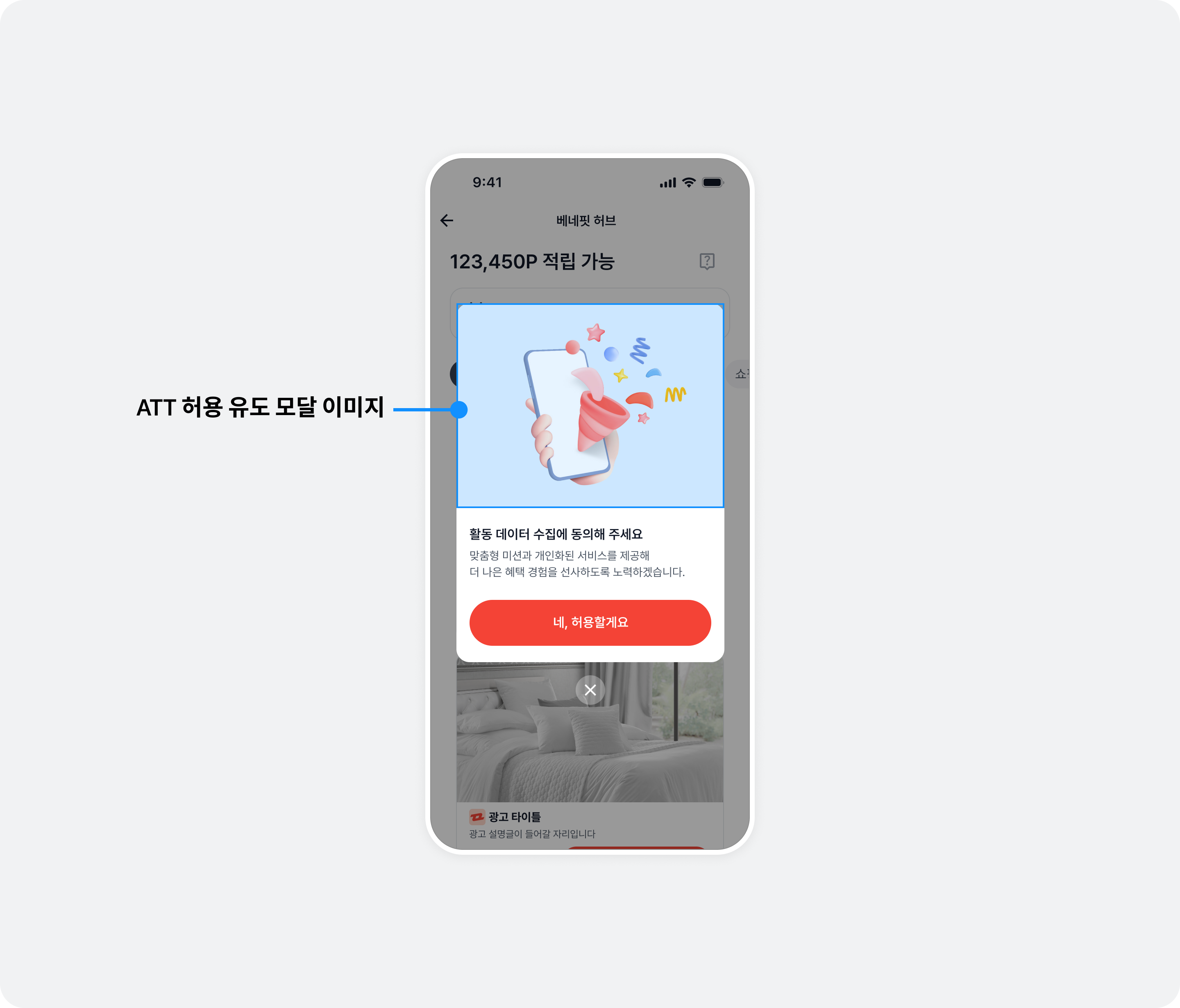 4 이상에서 앱 활동 추적 권한을 허용하지 않은 유저에게 권한 허용을 유도하는 모달의 이미지를 변경할 수 있습니다.
