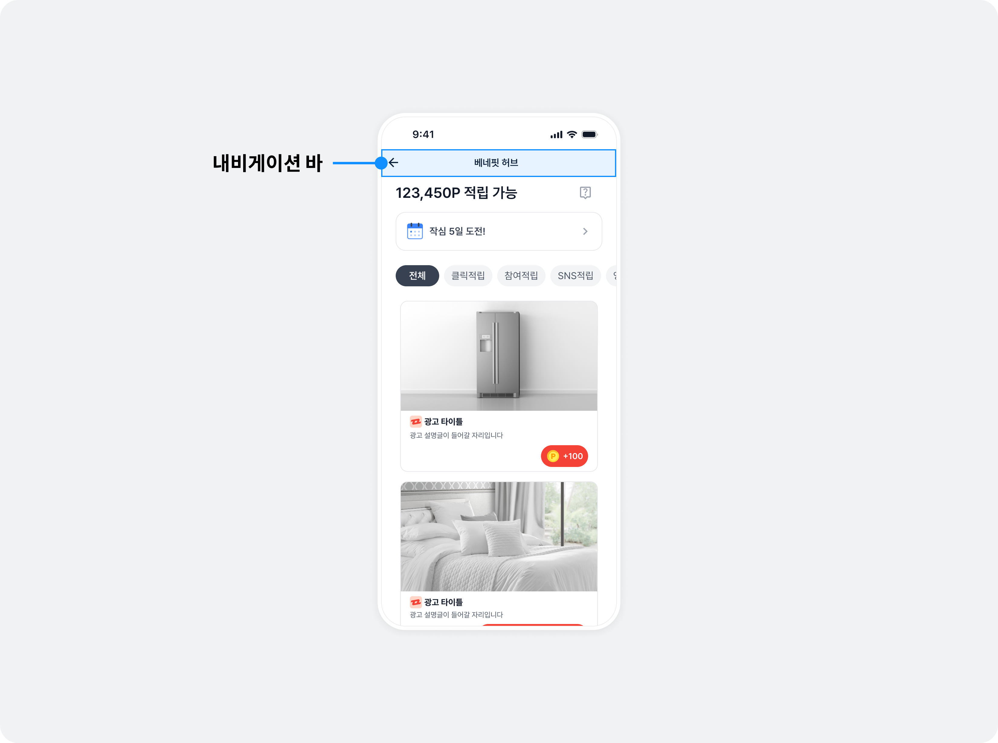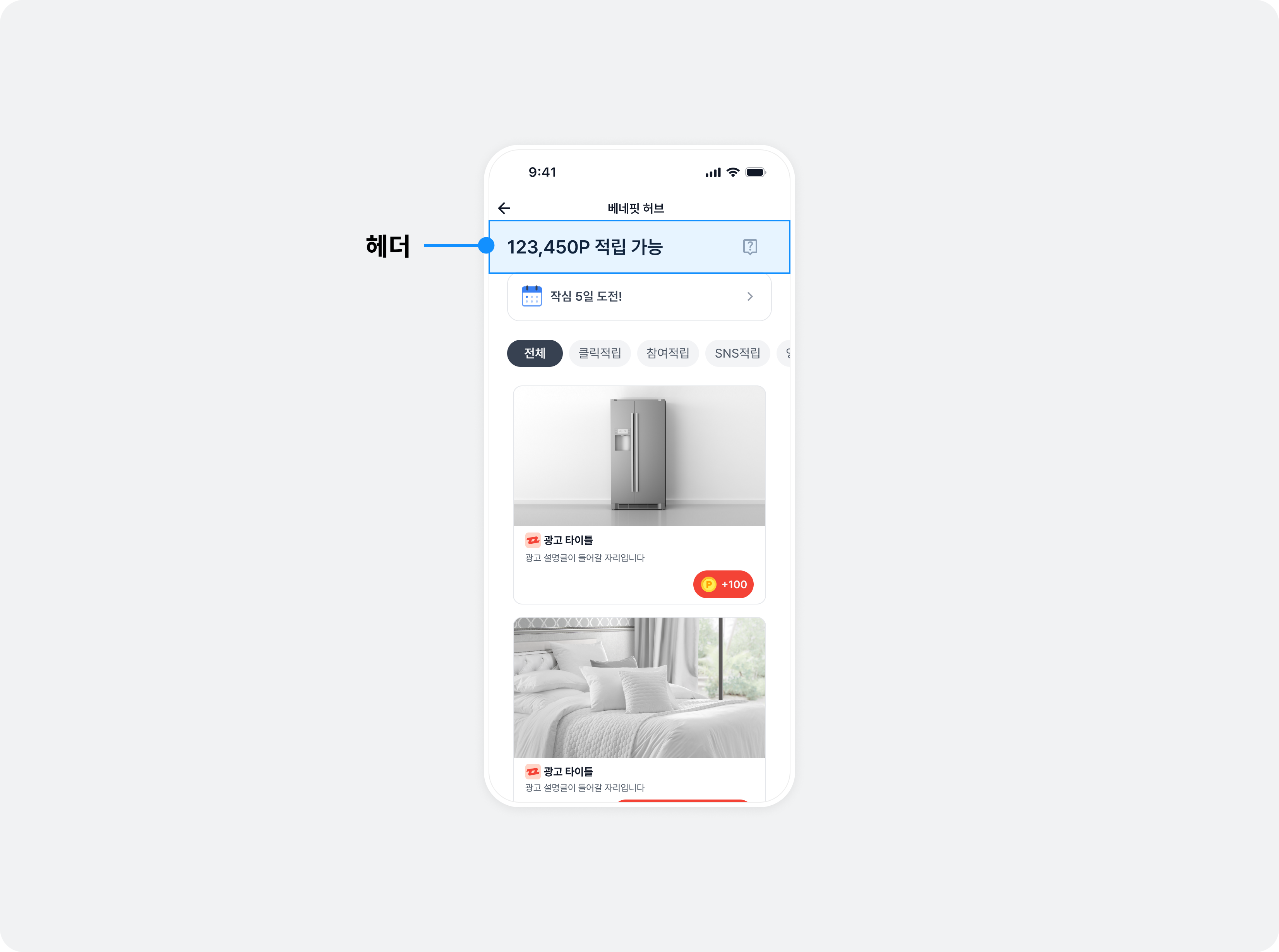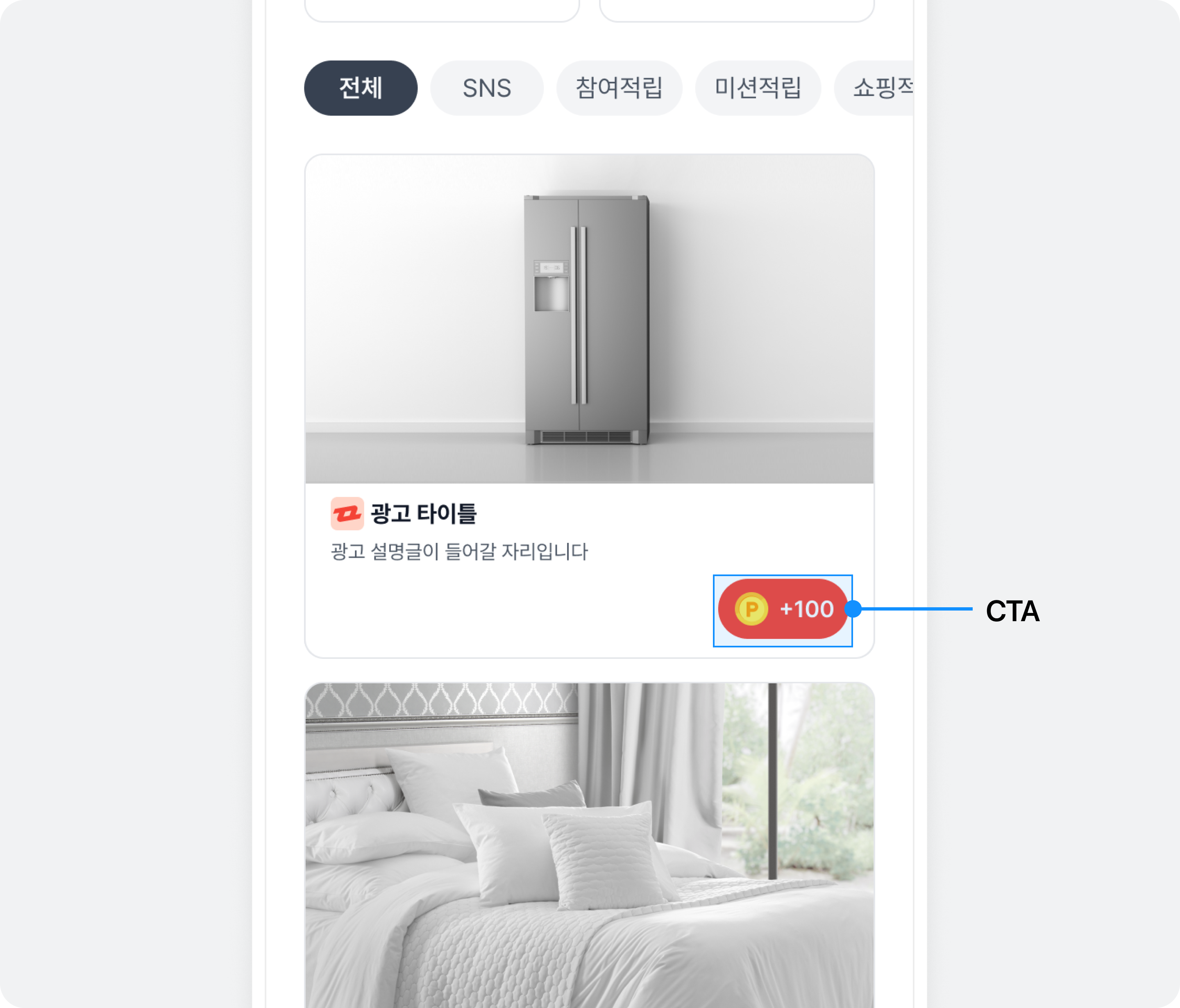 - 기본 광고 디자인을 사용하는 베네핏허브, 인터스티셜 등에 적용됩니다.