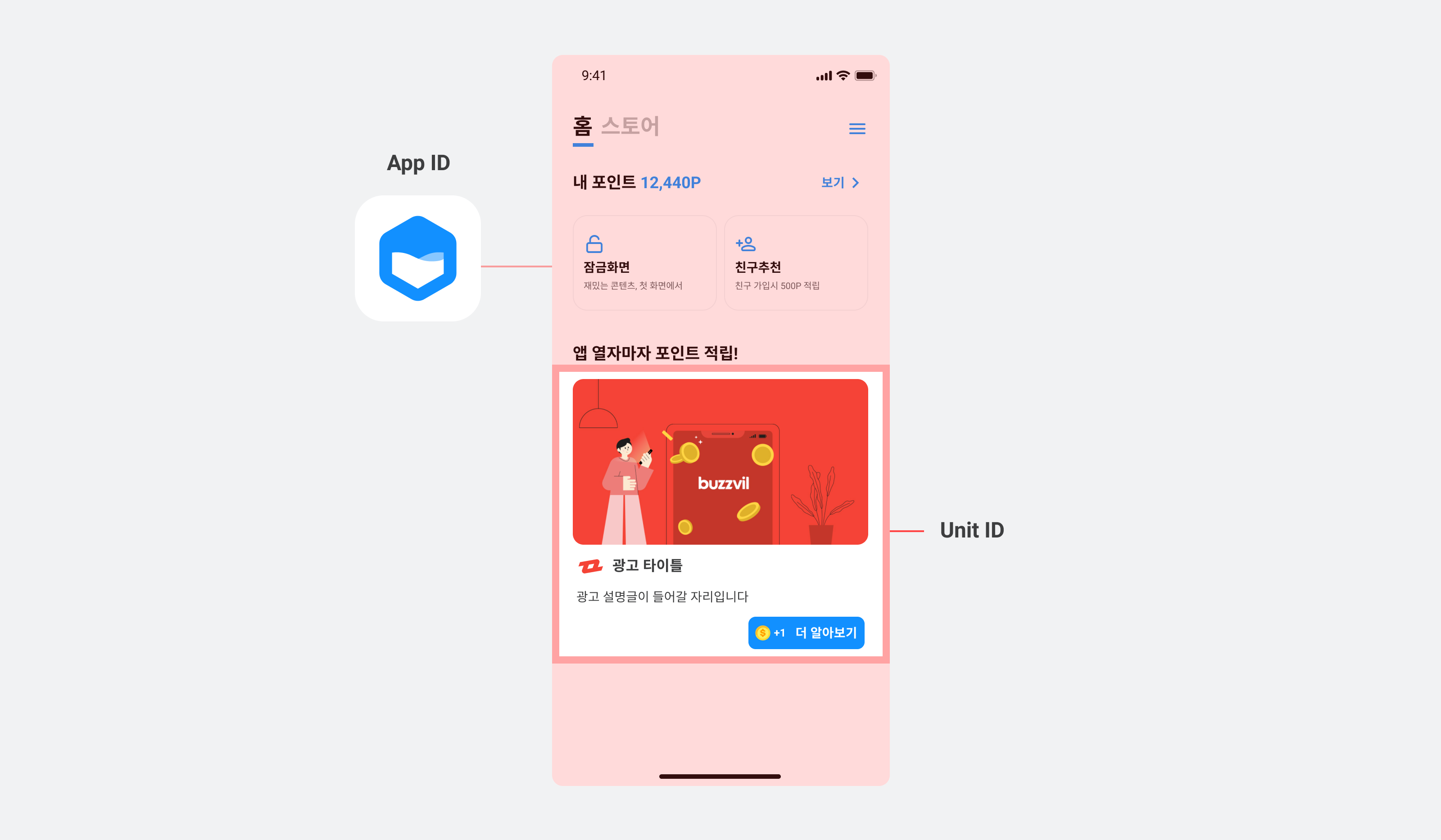 | Unit ID | BuzzAd iOS용 SDK를 통해 생성하는 지면별로 부여하는 고유 식별자입니다. |
