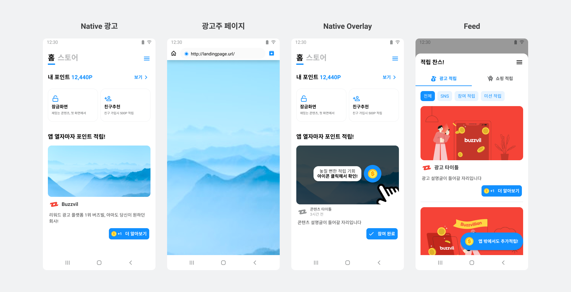 네이티브 광고에 참여했던 사용자가 앱으로 돌아왔을 때 추가 리워드 혜택을 놓치지 않도록 피드로 이동할 수 있는 경로를 메시지와 함께 네이티브 지면에서 제공합니다. 이미 설계되어 있는 네이티브 지면 위에 메시지를 표시하기 때문에 코드 한 줄로 기능을 추가할 수 있으며, 사용자에게는 더 많은 혜택을 제공하고 퍼블리셔에게는 추가 수익을 얻을 수 있는 기회를 제공합니다. 자세한 내용은 연동 가이드의 Native 지면에 Feed 진입경로 추가를 참고하십시오.