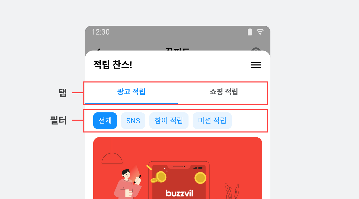 코드 수정 없이 변경할 수 있는 광고 분류 탭과 필터