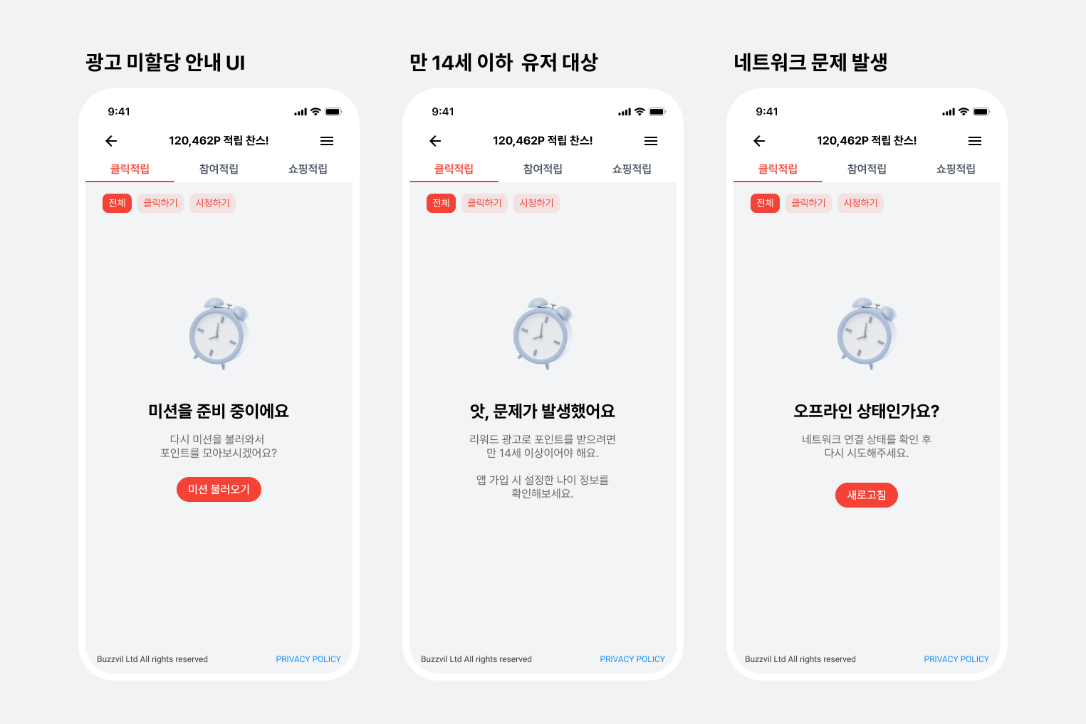 애드허브(피드)에서 광고가 일시적으로 유저에게 노출되지 않아 놓칠 수 있는 기회들을 잃어버리지 않기 위해, 광고 노출과 클릭 수가 최대 50% 까지 상승하는 효과가 검증된 UX로 개선하였습니다. 광고가 보이지 않으면 최대 세 번 더 유저에게 애드허브 새로고침 기회를 제공할 뿐만 아니라, 네트워크 연결 오류, 유저 연령의 제약 등에 대한 다양한 광고 미할당 원인과 해결 방법을 자세하게 제공합니다.