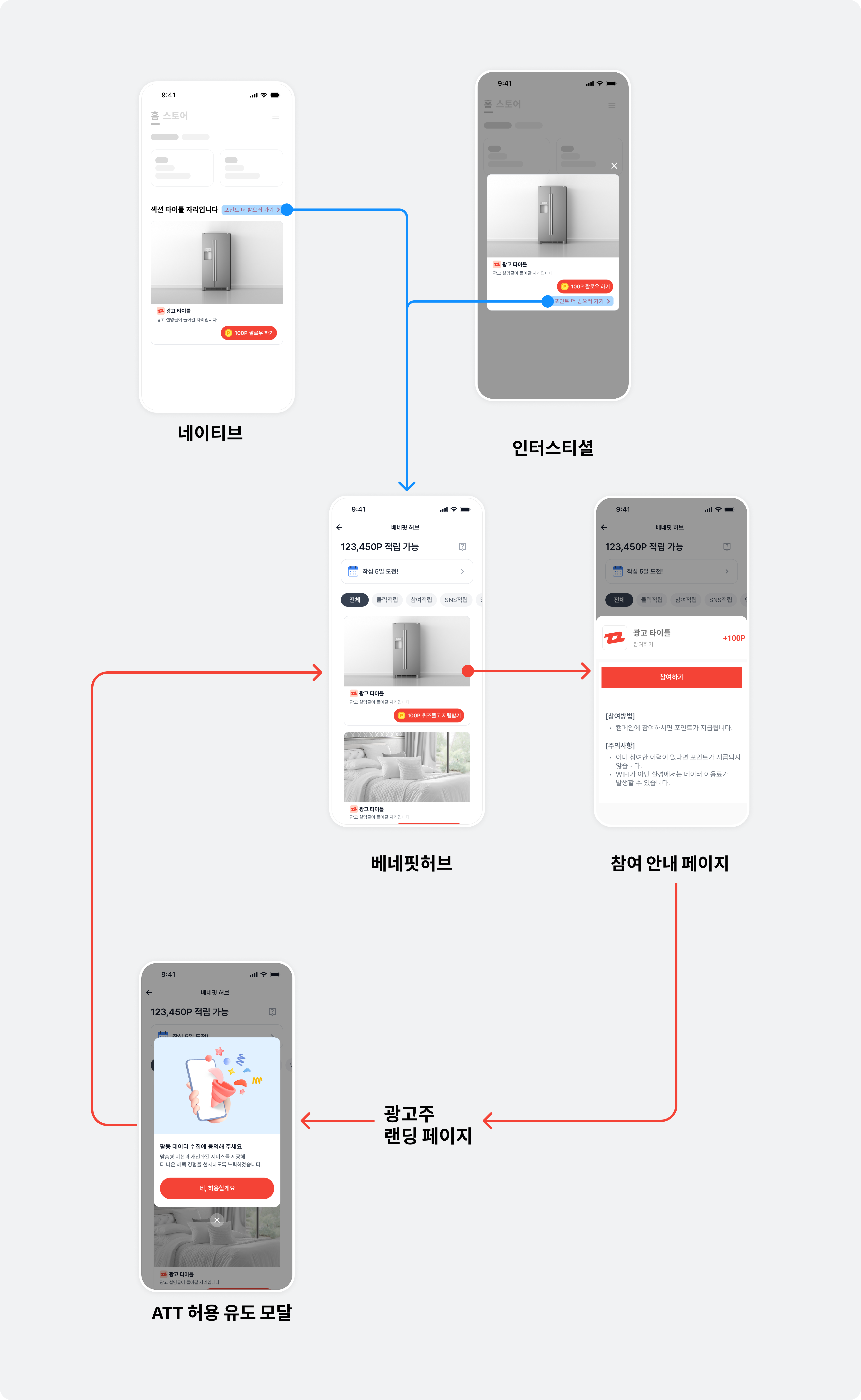 베네핏허브 중심으로 연결되는 수익화 인벤토리 흐름